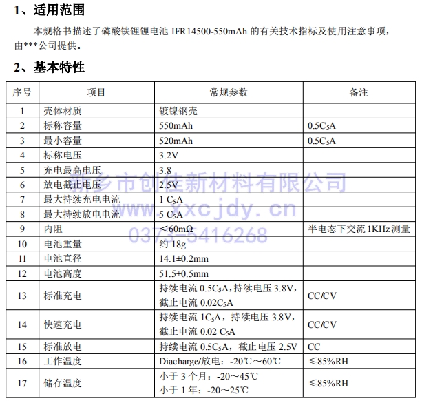 【產(chǎn)品名稱】: IFR14500-550mAh電池